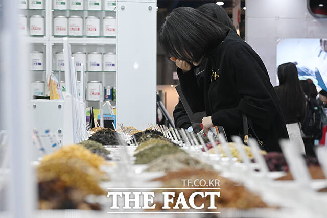 [더팩트ㅣ서예원 기자] 제24회 서울카페쇼가 19일 오전 서울 강남구 코엑스에서 열린 가운데 관람객이 차를 시향하고 있다.