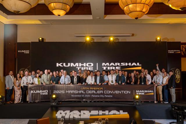 금호타이어는 이달 초 파나마 파나마시티에서 '2025 중남미 마샬 딜러 컨벤션'을 개최했다고 19일 밝혔다. 중남미 12개국 17개 주요 딜러사 관계자 40여명이 참석한 이번 행사에서 금호타이어는 수출용 브랜드인 '마샬'의 운영 전략과 주요 신제품을 소개했다.