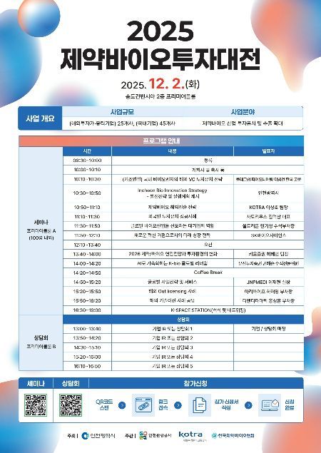노연홍 한국제약바이오협회 회장은 "2025 제약바이오투자대전은 바이오 앵커 시설이 밀집한 송도에서 국내외 투자가와 혁신 기업들을 직접 연결하는 중요한 기회가 될 것"이라며 "실질적인 투자 유치 성과와 함께 국내 제약바이오 산업의 글로벌 위상을 한 단계 높이는 계기가 되도록 최선을 다하겠다 "라고 했다.