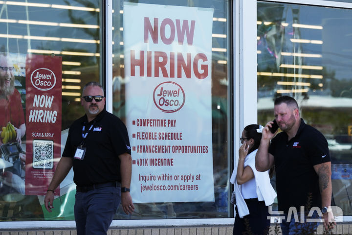 [디어필드(미 일리노이주)=AP/뉴시스] 18일(현지 시간) 월스트리트저널(WSJ)에 따르면 고용 정보 업체 챌린저, 그레이앤드크리스마스(CG&C)는 기술기업들이 올해 들어 14만1000명 이상을 감원했다고 밝혔다. 이는 전년 대비 17% 증가한 수치다. 사진은 미 일리노이주 디어필드의 한 식료품점에 지난 7월25일 직원을 구한다는 공지가 붙어 있다. 2025.11.19. |