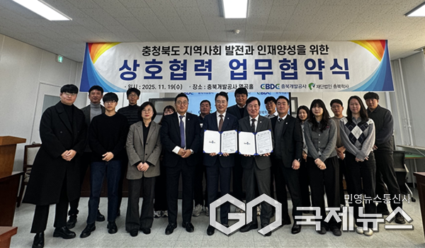 (청주=국제뉴스) 이재기 기자 = 충북개발공사(사장 김순구)는 11월 19일 재단법인 충북학사와 충북 지역 인재양성 및 사회공헌활동 강화를 위한 업무협약을 체결했다고 밝혔다.