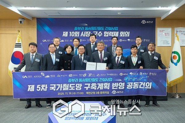 (천안=국제뉴스) 이원철 기자 = 19일 천안시는 예천 군청에서 충남·충북·경북지역 13개 시군의 시장·군수가 참석한 가운데 중부권 동서횡단철도 건설사업이 제5차 국가철도망 구축계획 반영을 위한 추진전략 등을 논의했다고 밝혔다.