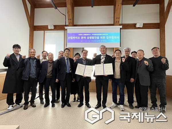 (청주=국제뉴스) 이상석 기자 = 충북도산림바이오센터는 19일 한국전문임업인협회 충북도지회와 업무협약을 체결하고, 산림생명자원의 산업화 기반을 강화하고 미래 산림산업을 선도할 전문임업인 양성과 역량 강화를 위해 상호 협력체계를 구축한다고 밝혔다.
