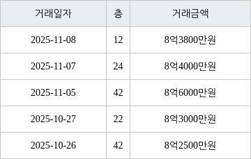 국토교통부 실거래가 공개시스템에 따르면 지난 2025년 11월 8일 인천광역시 연수구 송도동 더샵센트럴시티아파트 12층 전용면적 84㎡형이 8억3800만원에 거래됐다.