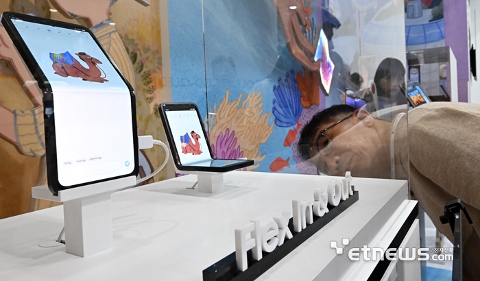 360도로 접을 수 있는 삼성디스플레이 플립형 폴더블 '플렉스 인앤아웃'. 이동근기자 foto@etnews.com |