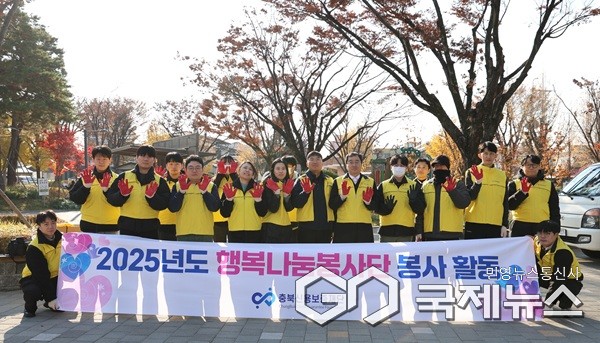 충북신보의 임직원으로 구성된 행복나눔 봉사단이 활동했으며 우암동 일대 이웃을 방문해 각 가정집 창고에 연탄을 배달하며 따뜻한 관심과 사랑의 온기를 전했다.