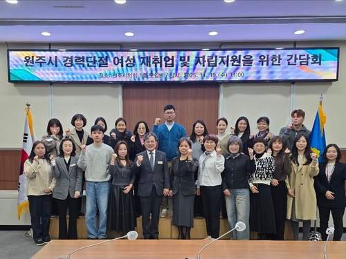 (원주=연합뉴스) 임보연 기자 = 원주시의회 곽문근 부의장은 19일 원주시의회 모임방에서 '경력단절 여성 재취업 및 자립 지원을 위한 간담회'를 주재하고 실질적 지원 방안을 논의했다.
