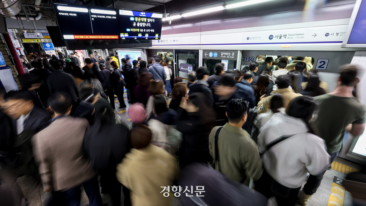 지하철 4호선 서울역이 출근길 시민들로 붐비고 있다. 성동훈 기자 |
