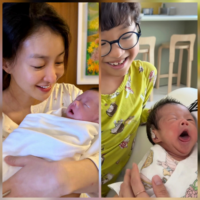 또 다른 컷에서는 갓 태어난 둘째가 입을 크게 벌리고 하품을 하자, 바로 옆에서 정윤 군이 흐뭇하게 내려다보며 미소를 짓는 모습이 포착됐다. 안경 너머로 번지는 환한 표정은 그저 동생이 “귀여워 죽겠는” 첫째의 마음이 그대로 드러난 장면이었다.