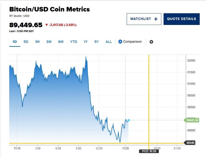 비트코인은 이날 한때 8만9000선이 붕괴되기도 했다. 오후 3시5분께 8만8500달러를 찍었다.