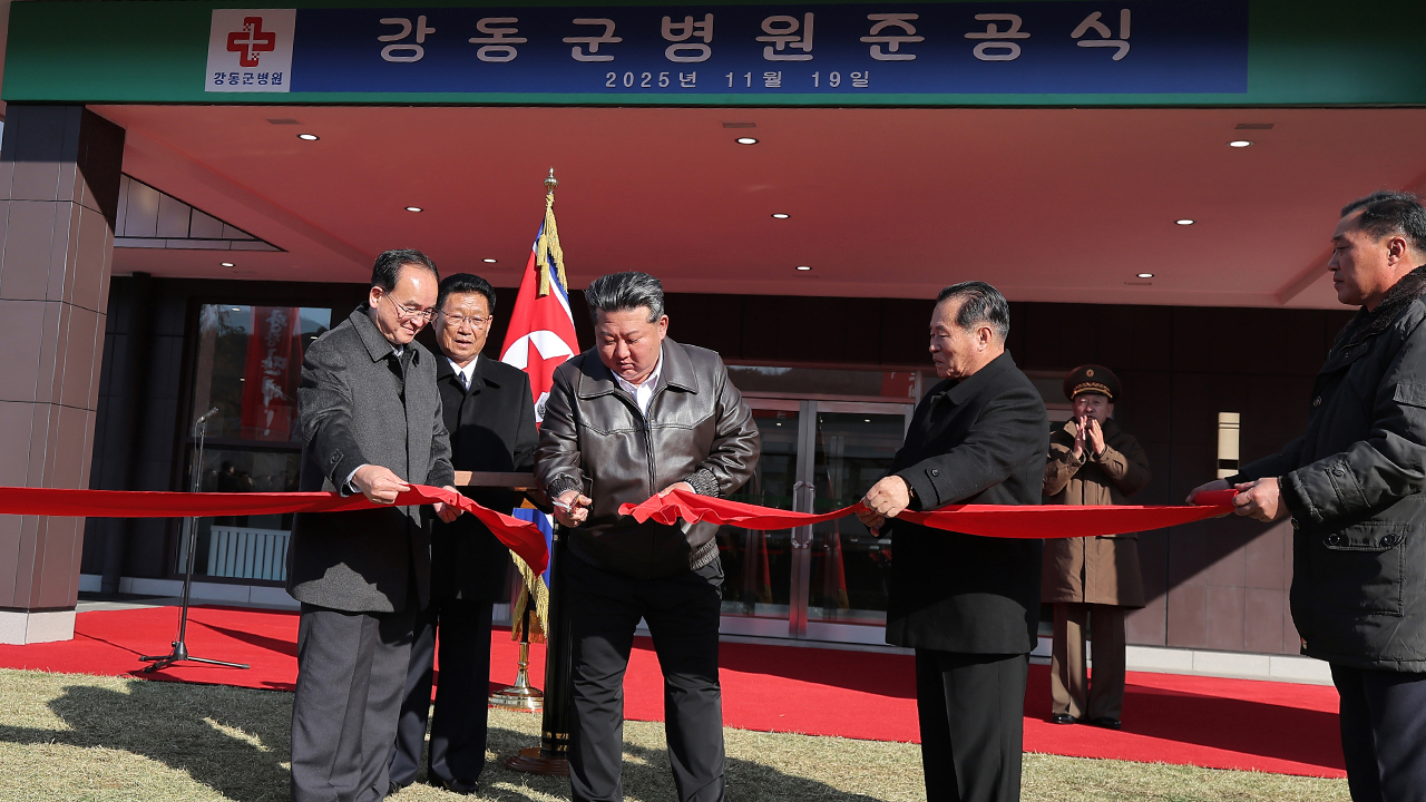 ▲ 김정은 북한 국무위원장이 지난 19일 진행된 평양시 외곽 강동군병원 준공식에 참석해 기념 연설을 하고 준공 테이프를 끊었다고 조선중앙통신이 20일 보도했다.