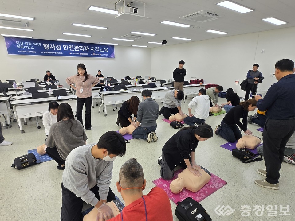 대전컨벤션센터에서 열린 ‘행사장 안전관리자 자격 교육’에서 참가자들이 심폐소생술 등 응급 대응 실습을 진행하며 현장 대처 능력을 강화하고 있다 |