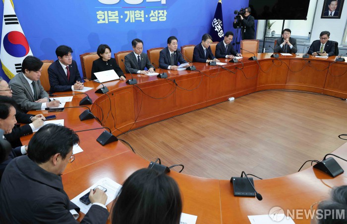 [서울=뉴스핌] 윤창빈 기자 = 김병기 더불어민주당 원내대표가 20일 서울 여의도 국회에서 열린 정책조정회의에서 모두발언을 하고 있다. 2025.11.20 pangbin@newspim.com |