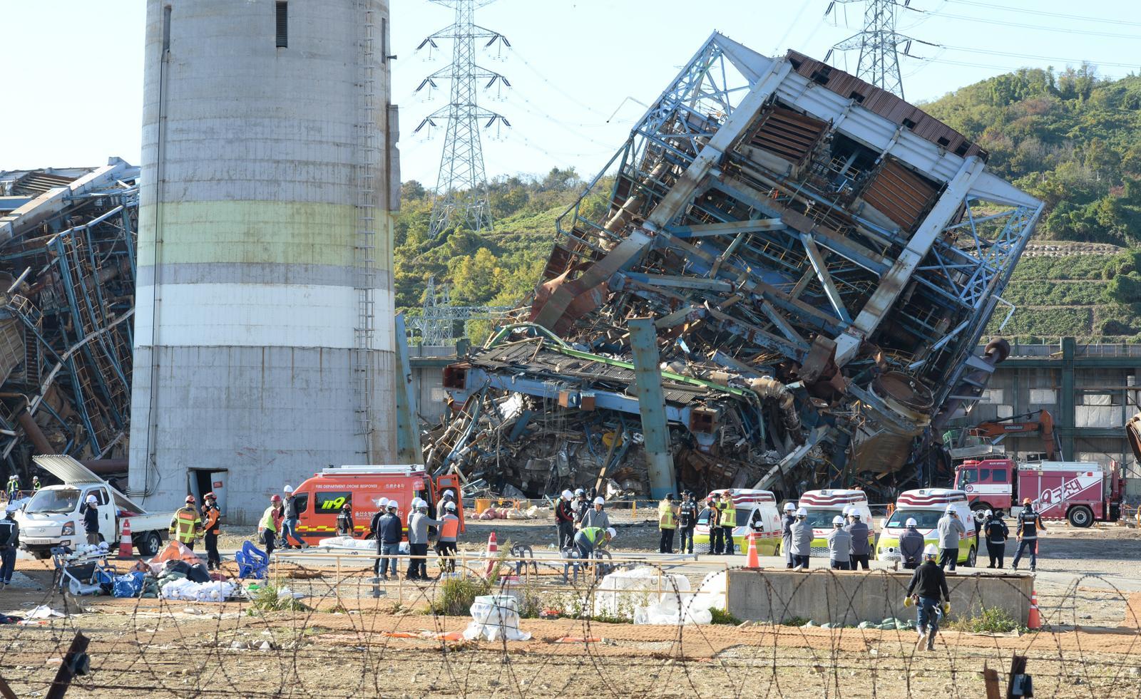 지난 6일 오후 2시 2분쯤 한국동서발전 울산화력발전소에선 높이 63m, 가로 25m, 세로 15.5m의 보일러 타워 5호기가 무너져 당시 현장에 있던 작업자 9명 중 7명이 매몰돼 모두 숨졌다. 2명은 매몰 직전 자력으로 탈출했으나 중경상을 입었다.