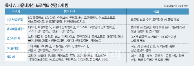 LG AI 연구원·업스테이지·네이버클라우드·NC AI·SK텔레콤