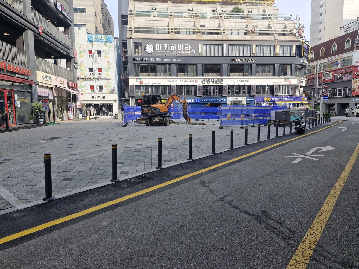 유튜버들이 오래 앉아 방송할 수 있는 볼라드와 원형 돌의자들을 모두 철거한 부천 피노키오광장 전경. 부천시 제공 |