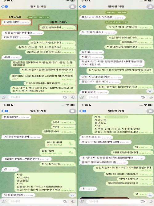 보험사기 일당이 주고받은 텔레그램 대화 기록. [사진 제공=서울경찰청 광역수사단] |