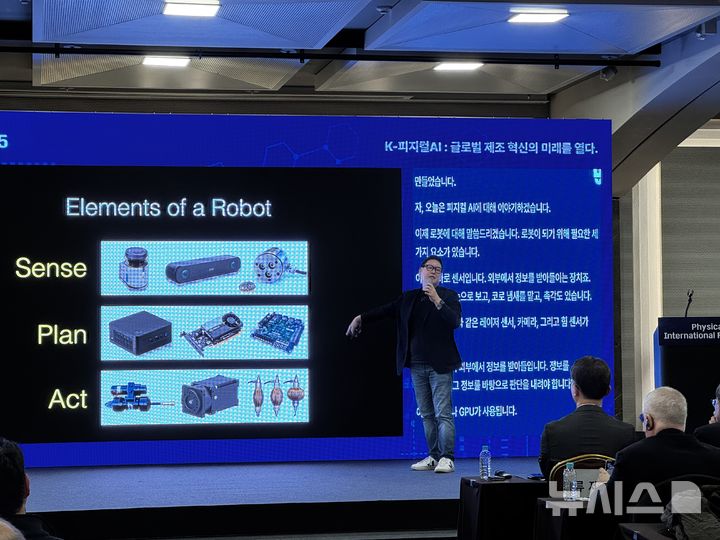 [서울=뉴시스] 심지혜 기자 = "컴퓨터 안에만 존재하는 데이터를 꺼내 현실 세계에서 움직이게 하는 것, 그게 인공지능 로봇이자 피지컬AI다."