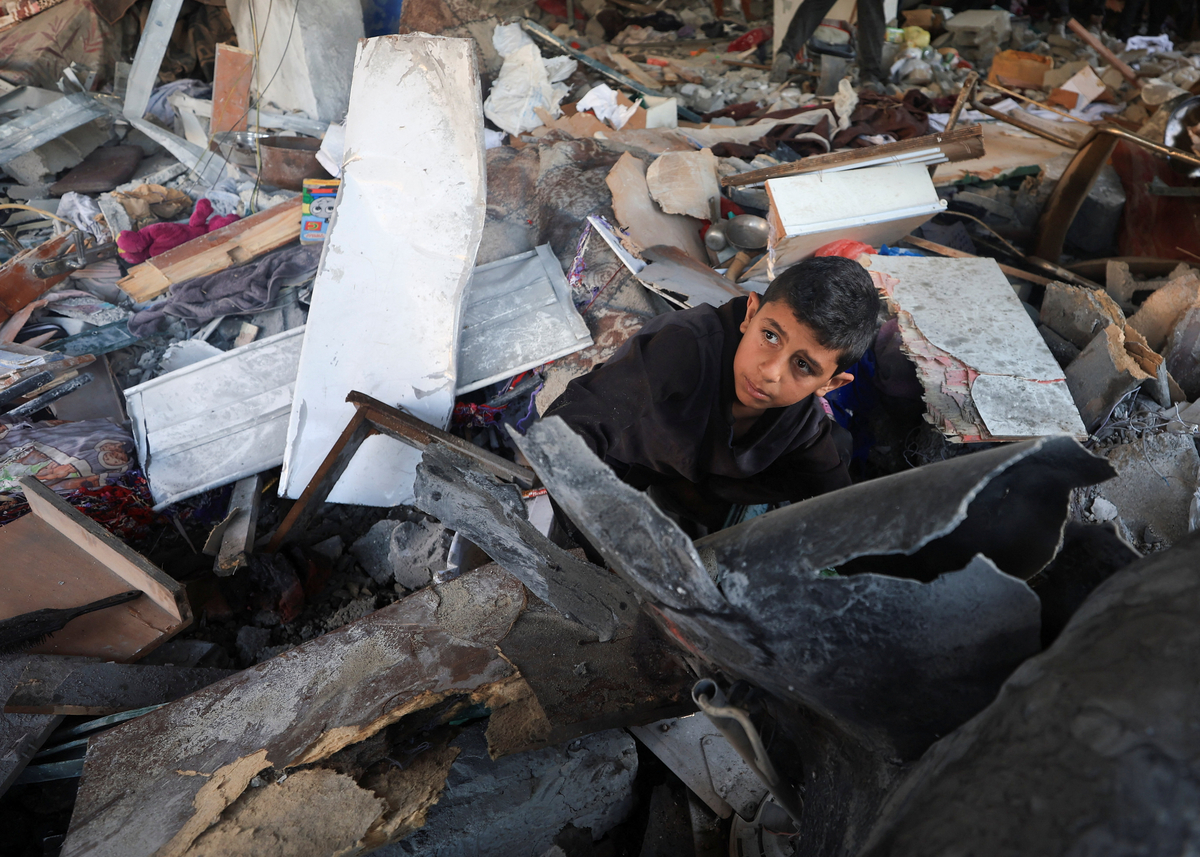 20일(현지시간) 가자시티에서 팔레스타인 어린이가 이스라엘군이 전날 공습한 지역을 둘러보고 있다. 로이터연합뉴스 |