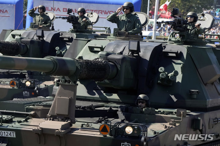 [바르샤바=AP/뉴시스] 유럽연합(EU)이 러시아의 침공에 대비해 병력·장비 국경 통과 절차를 간소화해 이동 속도를 높이는 '군사 솅겐(회원국간 국경 이동 자율화)' 구상을 19일(현지 시간) 발표했다. 사진은 2023년 8월15일 폴란드 바르샤바에서 열린 폴란드 국군의 날 기념 행사에서 한국산 K-9 자주포가 행진하는 모습. 2025.11.20. |