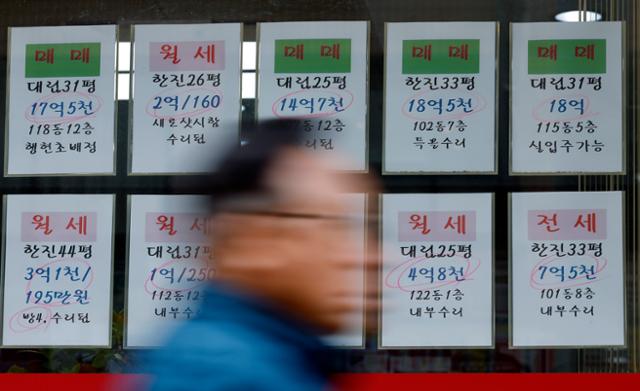 20일 서울 시내 한 부동산에 인근 아파트 월세·전세·매매 매물 안내문이 붙어 있다. 뉴스1 |