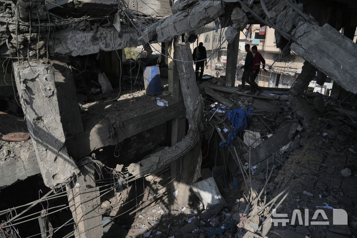 [데이르 알발라(가자)=AP/뉴시스] 김재영 기자 = 가자 남부 칸 유니스에 20일 이른 아침 이스라엘의 공습이 행해져 5명이 사망했으며 이를 포함해 약 12시간 동안 사망자가 33명에 이르렀다.