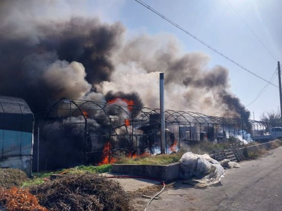 경남 김해시 대동면의 한 비닐하우스에서 불길이 피어오르고 있다. 경남소방본부 제공 |