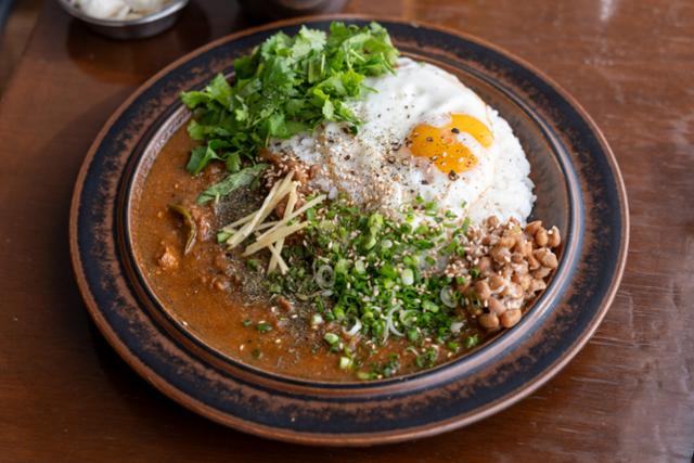 음식을 만드는 건 결국 사람, 셰프죠. 신문기자 출신이자 식당 '어라우즈'를 운영하는 장준우 셰프가 언론의 스포트라이트 너머에서 묵묵히 요리 철학을 지키고 있는 셰프들을 만납니다. 한국 미식계의 최신 이슈와 셰프들의 특별 레시피를 격주로 연재합니다.서울 성북동 '카레'에서 만든 낫토와 고수를 곁들인 진저 포크 카레. 장준우 제공 |