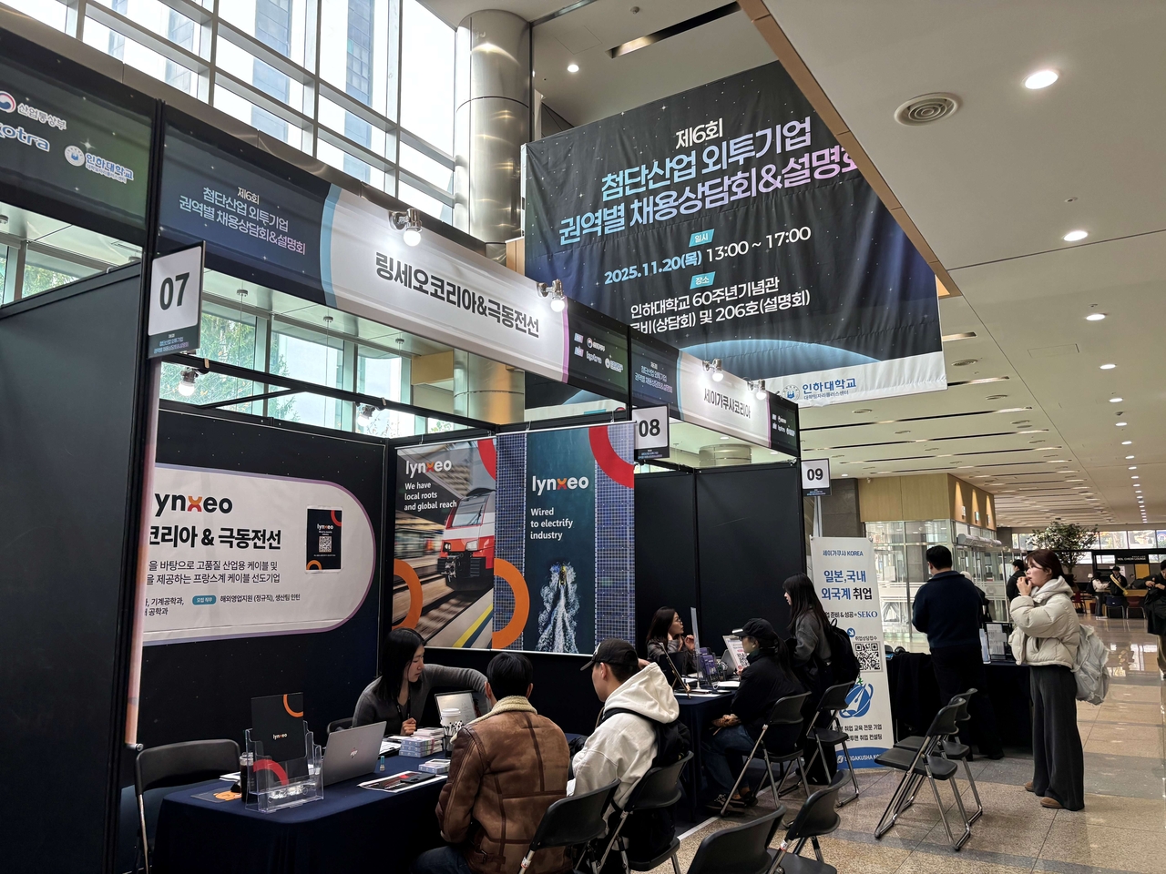 지난 20일 인하대학교 60주년기념관에서 열린 ‘첨단산업 외투기업 권역별 채용상담·설명회’에 마련된 기업별 채용 부스 전경 [코트라 제공] |