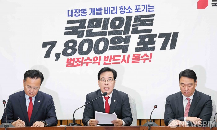 [서울=뉴스핌] 윤창빈 기자 = 송언석 국민의힘 원내대표가 21일 서울 여의도 국회에서 열린 원내대책회의에서 모두발언을 하고 있다. 2025.11.21 pangbin@newspim.com