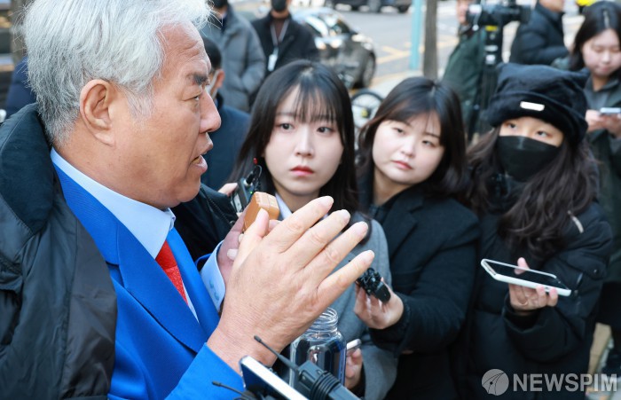 [서울=뉴스핌] 김학선 기자 = 서울서부지법 폭력 난동 사태의 배후로 지목돼 온 전광훈 사랑제일교회 목사가 18일 피의자 신분으로 서울경찰청에 출석하며 취재진 앞에서 입장을 밝히고 있다. 2025.11.18 yooksa@newspim.com |