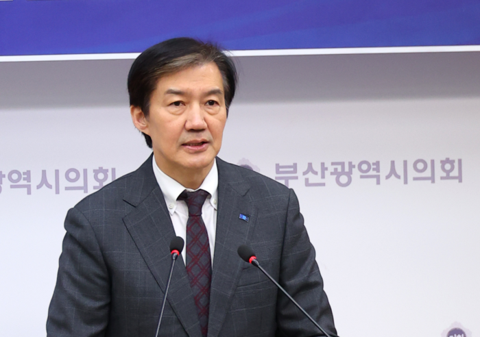 조국혁신당 대표 선거에 단독 출마한 조국 전 비상대책위원장이 21일 오전 부산 연제구 부산시의회에서 열린 전당대회 당 대표 및 최고위원 후보 기자회견에서 발언하고 있다. [연합뉴스] |