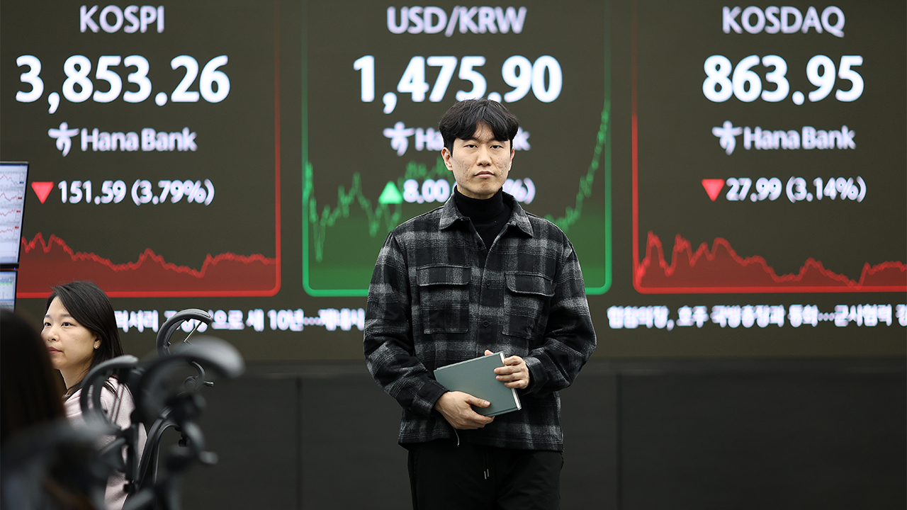 코스피 지수는 21일 전장보다 3.79% 내린 3,853.26에 마감했습니다.
