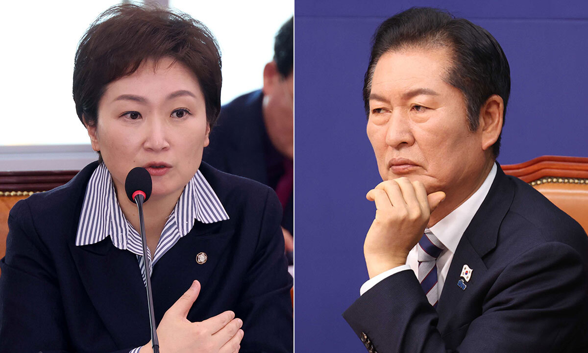 더불어민주당 이언주 최고위원(왼쪽), 더불어민주당 정청래 대표. 뉴시스 |