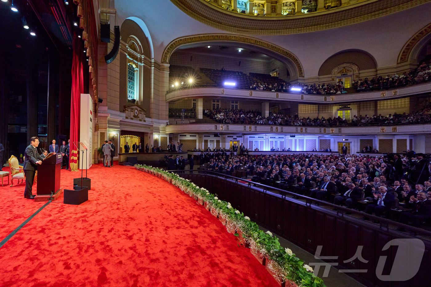 (서울=뉴스1) 이재명 기자 = 이집트를 공식 방문 중인 이재명 대통령이 20일(현지시간) 카이로 한 호텔에서 열린 이집트 동포·지상사 간담회에서 인사말을 하고 있다. (이재명 대통령 SNS. 재판매 및 DB 금지) 2025.11.22/뉴스1