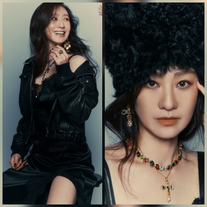 또렷한 이목구비와 매끈한 피부결, 절제된 표정만으로도 강렬한 존재감을 만들었고, 50대 중반이라는 사실이 믿기지 않을 만큼 우아하고 고혹적인 아우라가 돋보였다. 화려한 주얼리와 블랙 스타일링도 그녀 특유의 조용한 카리스마를 더욱 강조했다.