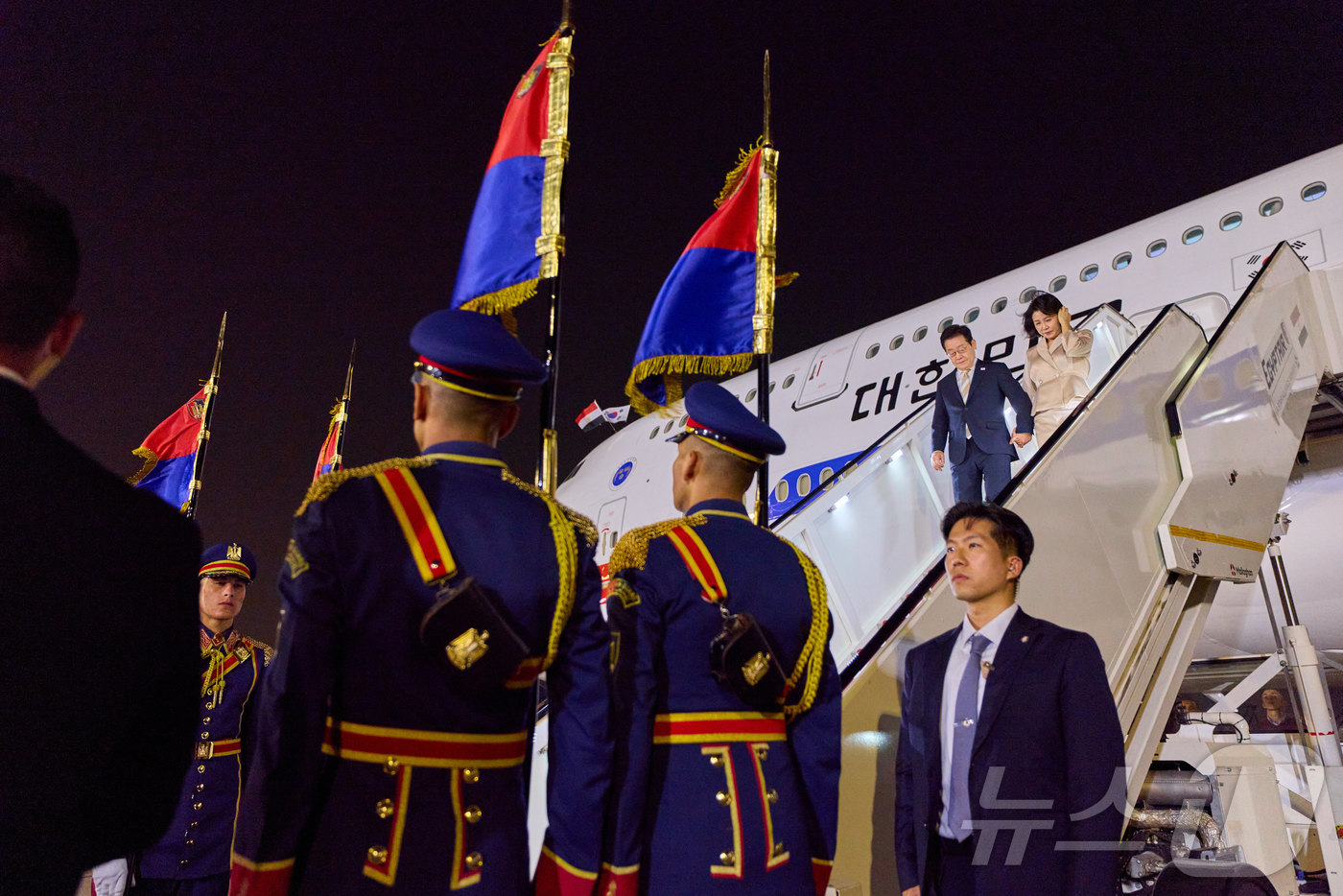 (서울=뉴스1) 이재명 기자 = 이집트를 공식 방문한 이재명 대통령과 김혜경 여사가 19일(현지시간) 카이로 국제공항에서 이동하고 있다. (대통령실 제공. 재판매 및 DB 금지) 2025.11.23/뉴스1