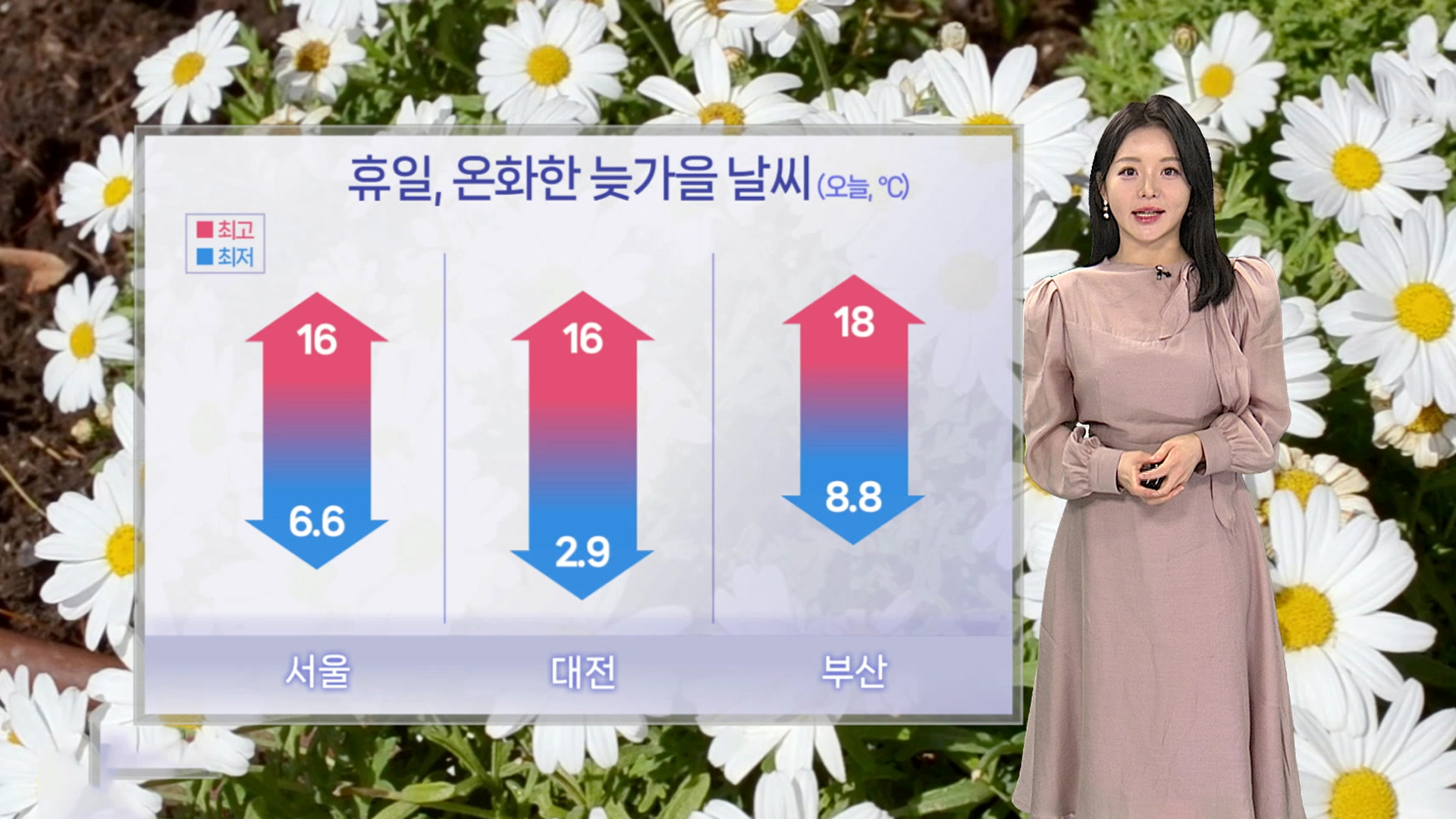 휴일인 오늘도 큰 일교차만 주의하신다면 완연한 가을을 즐기기 좋겠습니다.