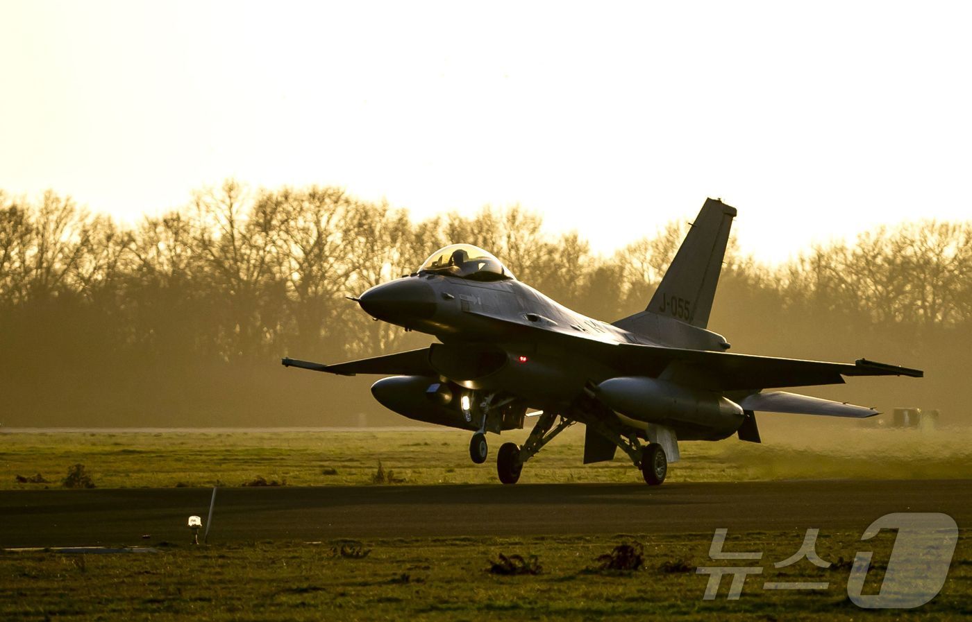 네덜란드 남부 볼켈 공군기지 활주로에 네덜란드 공군의 F-16 전투기가 착륙하고 있습니다. 2018.1.2 ⓒ AFP=뉴스1 |