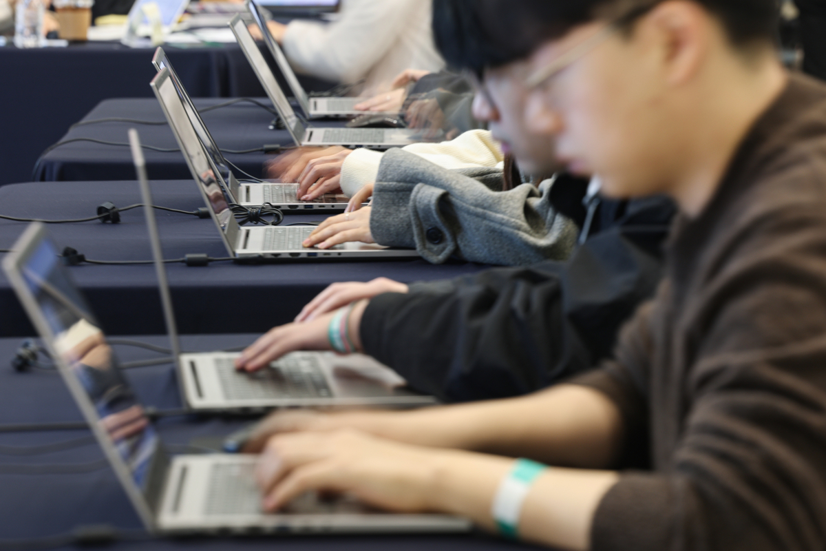 지난 6일 서울 중구 동대문디자인플라자(DDP)에서 열린 2025 서울시 일자리 박람회에서 코딩 테스트 대회 ‘코드레이스’가 진행되고 있다. 연합뉴스 |