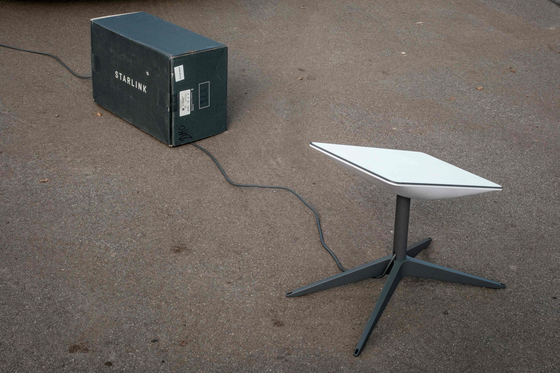 우크라이나의 스타링크 위성 인터넷 서비스 터미널. AFP=연합뉴스 |