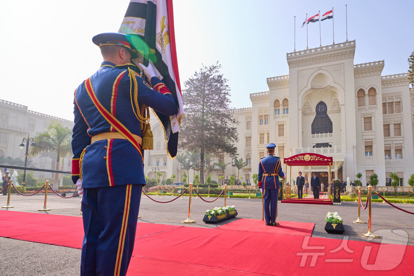 (서울=뉴스1) 이재명 기자 = 이집트를 공식 방문 중인 이재명 대통령이 20일(현지시간) 카이로 대통령궁에서 열린 공식 환영식에서 압델 파타 알시시 이집트 대통령과 의장대를 사열하고 있다. (대통령실 제공. 재판매 및 DB 금지) 2025.11.23/뉴스1