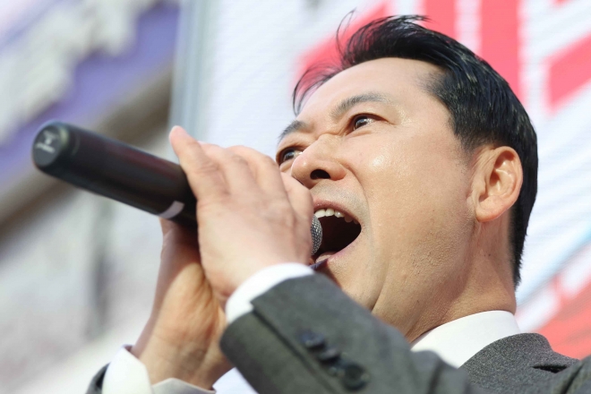 장동혁 국민의힘 대표가 23일 오후 경남 창원시 성산구 중앙동에서 열린 ‘민생회복 법치수호 국민대회’에 참석해 발언하고 있다. 창원 연합뉴스 |