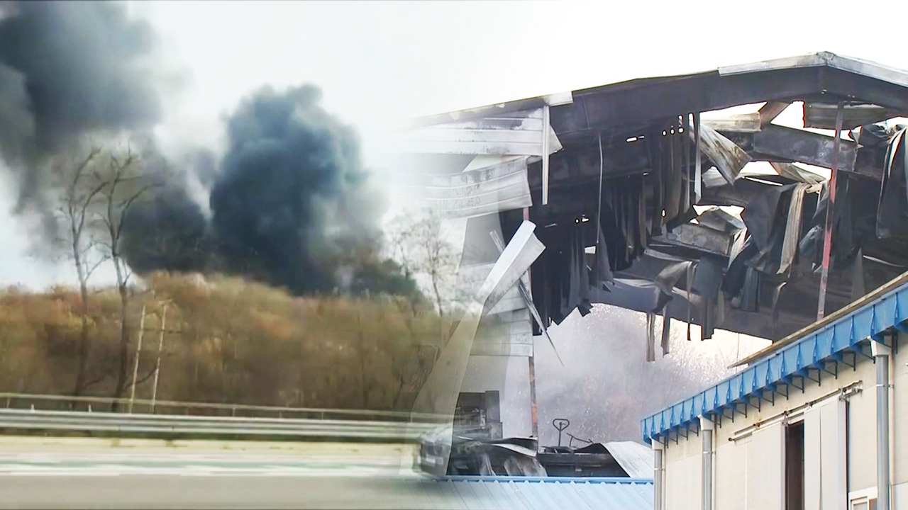 샌드위치 패널로 만든 공장 건물은 완전히 타 무너져 내렸습니다.