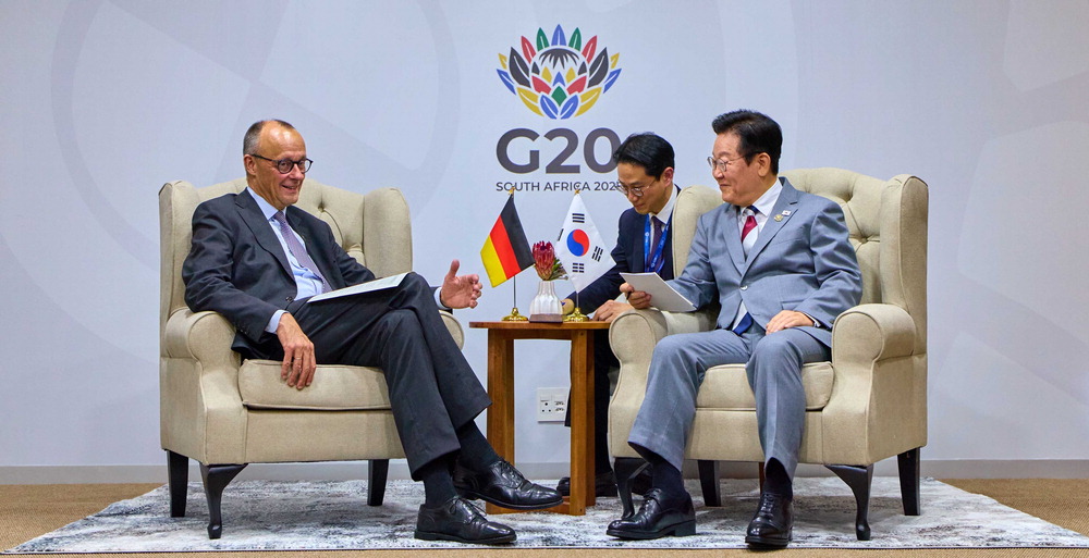 이 대통령은 앞서 22일 남아프리카공화국 주요 20개국(G20) 정상회의를 계기로 프랑스·독일과 양자 정상회담을 했다. 이 대통령이 프리드리히 메르츠 독일 총리에게 "통일 노하우를 알려달라"고 말했고, 메르츠 총리는 한국의 대중(對中) 인식을 물으며 현안에 대해 논의했다. 에마뉘엘 마크롱 프랑스 대통령과는 "전략적 동반자 관계로 격상했으면 좋겠다"고 말했다. 이 대통령은 내년이 양국 수교 140주년이라며 마크롱 대통령에게 국빈 방한을 요청했다.