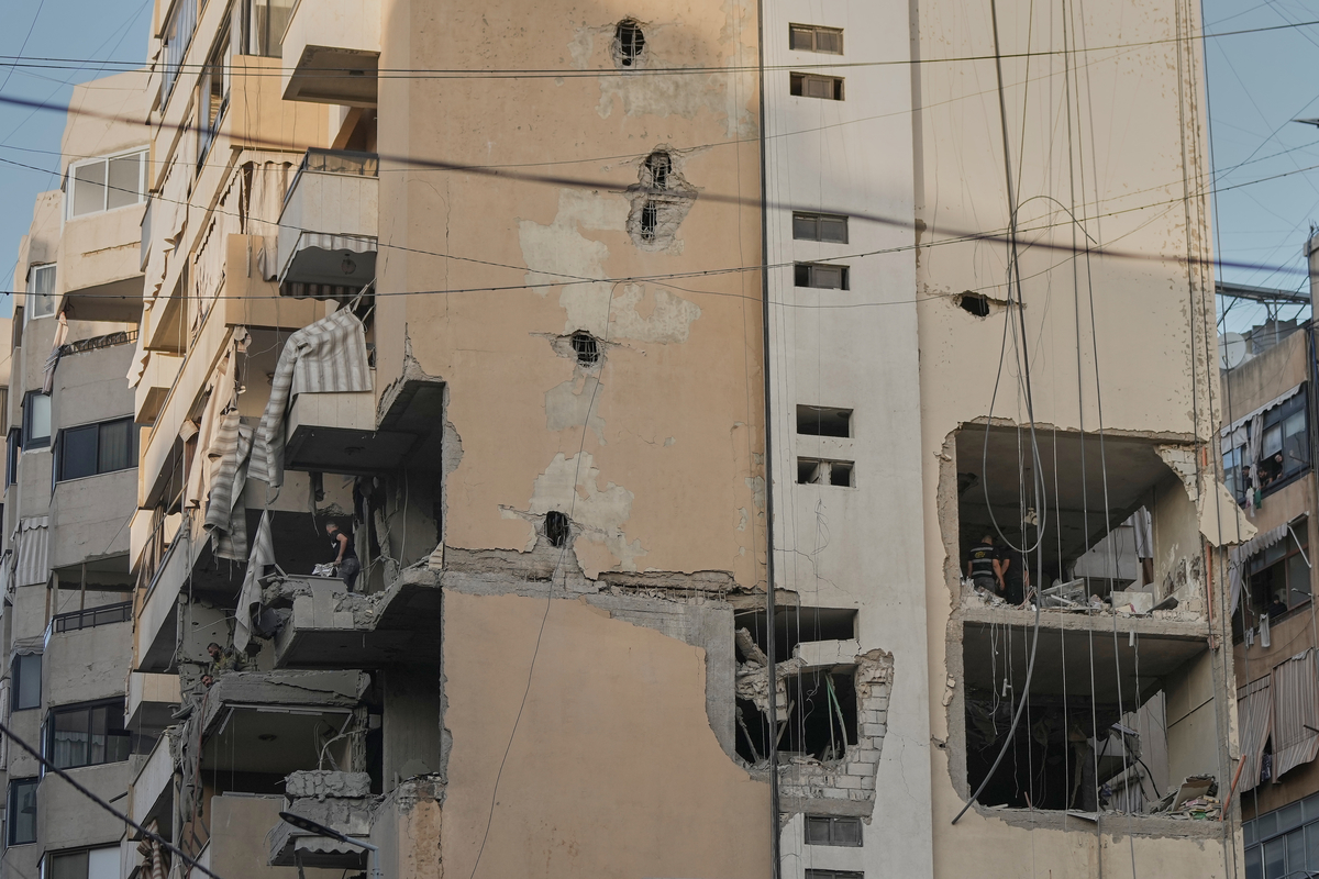 23일 레바논 베이루르 다히예 지역에 이스라엘군의 공습으로 건물이 무너져 있다. AP연합뉴스 |