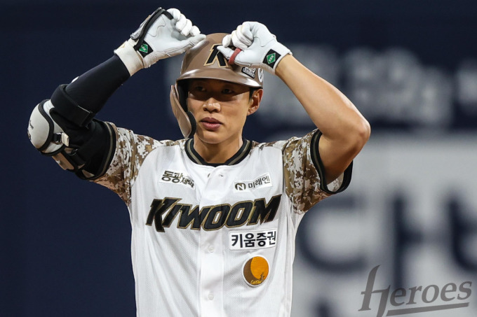 [서울=뉴스핌] 키움의 송성문이 지난 6월 26일 고척 KIA전에서 2루타를 기록한 뒤 세리머니 하고 있다. [사진 = 키움] 2025.06.26 wcn05002@newspim.com |