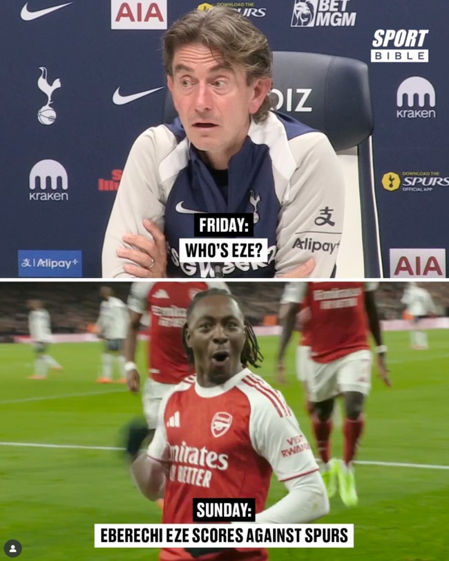 경기 전부터 프랭크 감독의 발언이 화제가 됐다. 프랭크 감독은 사전 기자회견에서 에제에 대해 묻자 "에제가 누구냐"라고 답변했다. 에제를 당연히 모를 리가 없지만 웃음을 유발하는 답변을 남겼다. 프랭크 감독은 이어서 "아주 좋은 선수다. 아스널에서 뛰고 있다. 꼭 이기고 싶은 팀이다"라고 말했다. 올 여름 에제는 토트넘 이적이 유력했지만 마지막 순간에 아스널을 택하면서 토트넘의 최대 라이벌 팀으로 향했다. 프랭크 감도은 이를 염두에 두고 발언한 듯했다.