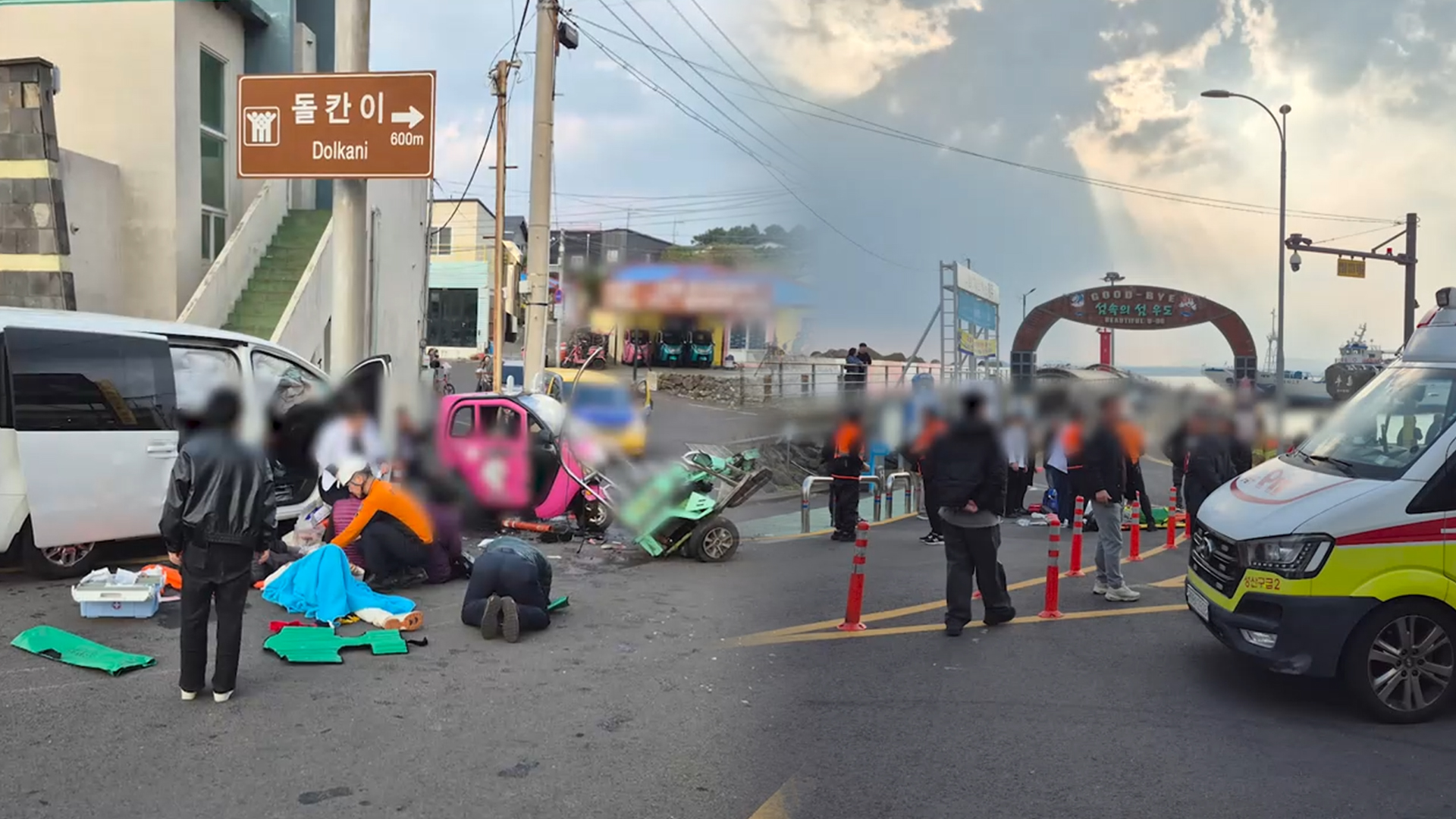 오늘(24일) 낮 2시 50분쯤 제주시 우도면 천진항에서 승합차가 사람이 밀집한 지역으로 돌진하는 사고가 발생했습니다.