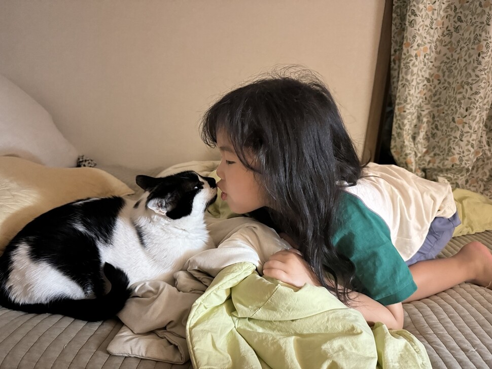 “아이가 많이 어릴 때는 위생을 좀 더 신경 써야 한다. 피부나 호흡기가 예민한 아이들은 고양이 털 때문에 아플 수도 있다. 마음을 많이 내려놓아야 하는 부분도 있다. 조심해도 피부병이 옮을 수 있고, 고양이가 움직이다가 실수로 아이를 할퀼 수도 있다. 반려동물도 내 자식이라는 마음으로 이런저런 일을 무던하게 넘기는 태도를 갖는 게 좋다. 하지만 아프거나 다치는 건 아주 가끔 있는 일이고, 거의 모든 날들은 훨씬 더 행복하고 만족스럽다. 아이 역시 좀 크니까 고양이를 키우는 덕분에 유치원에서 인기가 많다면서 너무 좋아한다.”